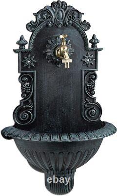 Pour une utilisation en extérieur : Fontaine suspendue idéale pour le jardin et la terrasse - Fabriquée en aluminium coulé peint en vert foncé. Pratique : Élément de jardin avec robinet et petit bassin - Avec un bouchon. Polyvalent : Une excellente station de lavage après le travail au jardin, pompe à eau pour fontaines ornementales. Détails : Bassin H x L x P : env.